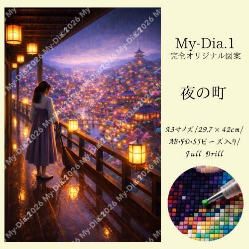 【一点物】夜の町/AB・FD・CRビーズ入り/ダイヤモンドアート/ 30x40cm/フルビー ズ/オリジナル