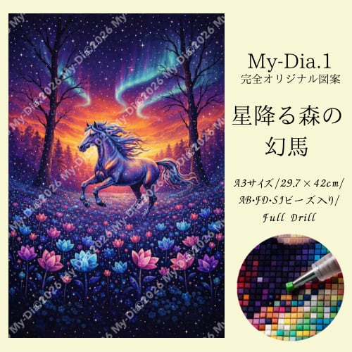 【一点物】星降る森の幻馬/AB・FD・CRビーズ入り/ダイヤモンドアート/ 30x40cm/フルビー ズ/オリジナル