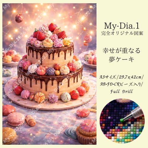 【一点物】幸せが重なる夢ケーキ/AB・FD・CRビーズ入り/ダイヤモンドアート/ 30x40cm/フルビー ズ/オリジナル