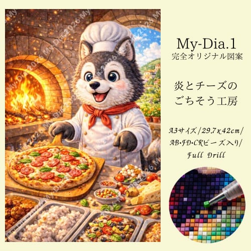 【一点物】炎とチーズのごちそう工房/AB・FD・CRビーズ入り/ダイヤモンドアート/ 30x40cm/フルビーズ/オリジナル